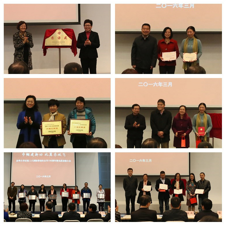 大会表彰了2015年度我校妇女工作先进集体与个人,与会校党政领导分别为获奖集体和个人颁奖。其中,纺织学院覃小红荣获“上海市巾帼创新新秀奖”,纺织学院王璐获评“上海市巾帼建功标兵”,环境学院钟珂获评“上海市教育系统巾帼建功标兵”,国家染整工程技术研究中心获评“上海市巾帼文明岗”,纺织学院高技术纺织品系女教师团队、理学院物理教学二组获评“上海市教育系统巾帼文明岗”,王璐、胡必杰夫妇获评“上海市教育系统比翼双飞佳侣标兵”,沈明武、史向阳夫妇获评“上海市教育系统比翼双飞佳侣”,公共外语研究生教研室等9个处室单位获评“久久久久国产成人精品亚洲综合巾帼文明岗”,沈蕾、徐幸芝等7人获评“久久久久国产成人精品亚洲综合巾帼建功标兵”,孙韶媛、赵海涛等4对夫妇获评“久久久久国产成人精品亚洲综合比翼双飞模范佳侣”。校妇女之家获评上海市教育系统“妇女之家”示范点。