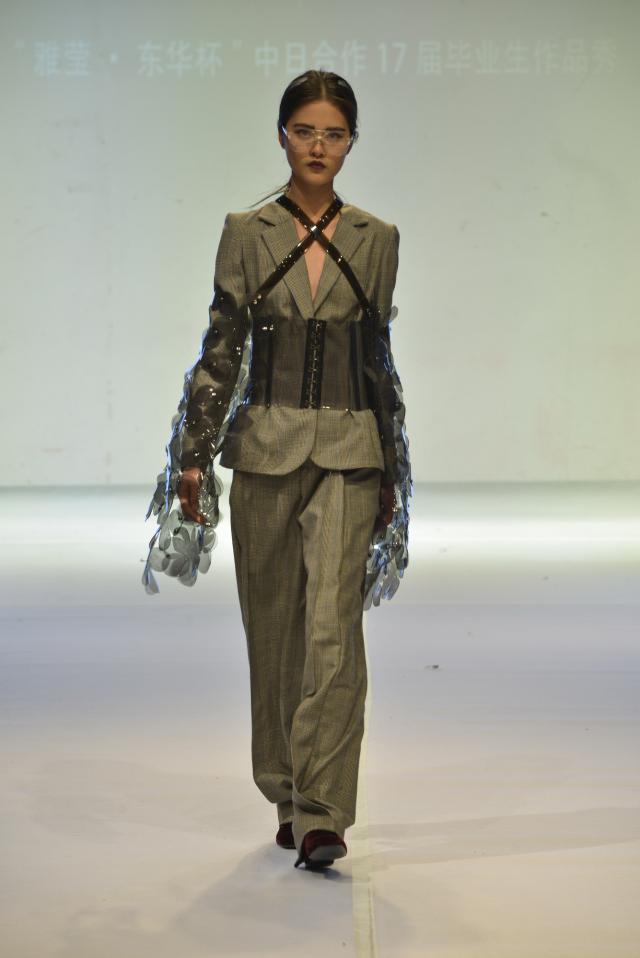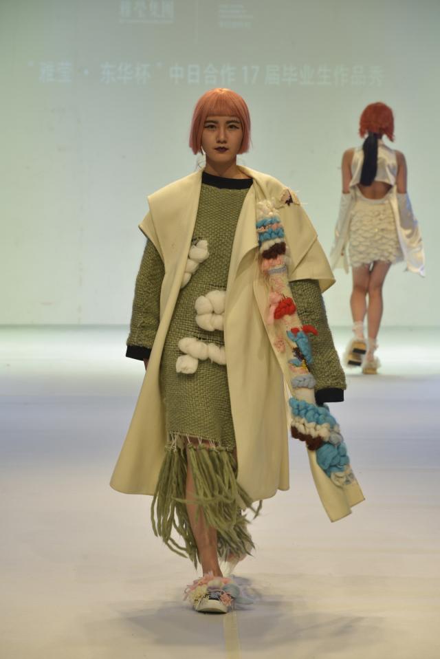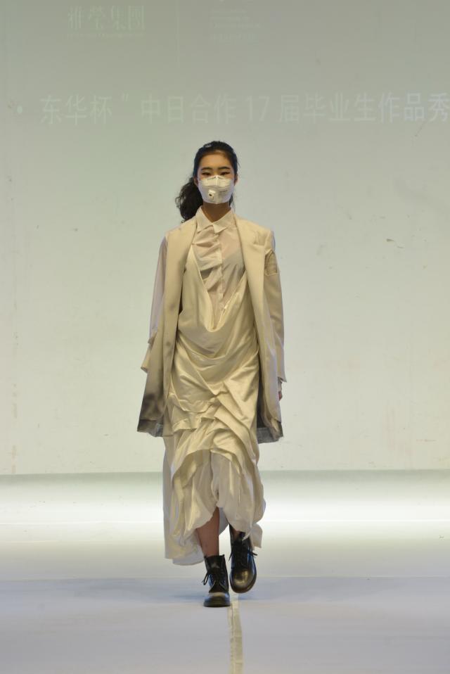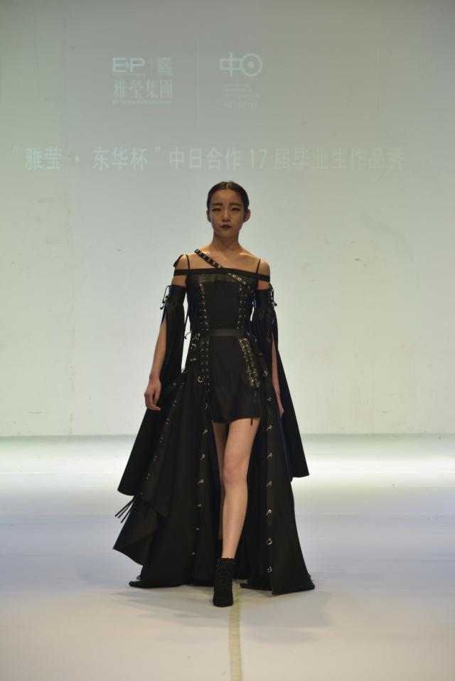 中日合作班自办学起便与日本文化服装学院合作,从服装设计理论到实际制版与制作能力的教学,均采用日本文化服装学院教学标准,致力将每一名学生的个人特色与特长发挥,培养学生独立完成从设计到制作的能力。2017届学生是中日合作班第11届毕业生。“3+1”的联合培养模式,带给中日合作班学生的不仅有出色的设计创作能力与制版制衣技术,更有国际化的视野和理念。这些作品均为他们在日本文化服装学院交流学习时期制作完成,这群年轻的设计师怀揣着对服装设计独到的理解与感悟,将设计思考、生活经历与文化态度融入作品中,风格鲜明,各具特色,体现了中日合作专业融创新性、时尚性、技术性于一体的办学理念,呈现了一场精彩纷呈的毕业秀。
