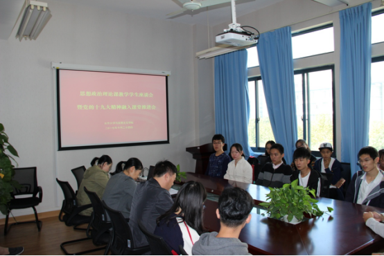 10月24日下午,十九大闭幕当天,学院先后组织了“全面推进十九大精神进讲稿、进课堂、进头脑,着力提升思想政治理论课教学质量”的教师集体备课会和“十九大精神进课堂学生座谈会”。教师备课会以教研室为单位组织,要求教师对十九大精神认真反复研读、吃准吃透重要精神,并立足知识点将十九大精神进课堂落在实处。通过开展学生座谈会,及时了解教育对象对十九大的学习和认知情况,以及学生的教育需求,有针对性地将十九大精神融入课堂教学。