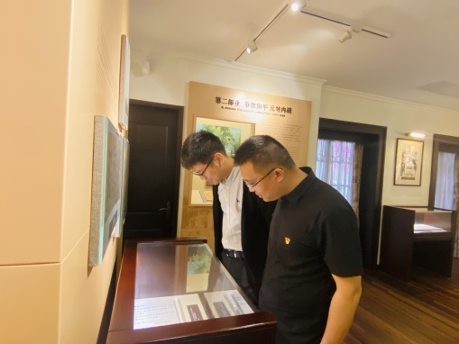 “通过摆放的文物材料,看着墙上的照片,非常震撼,我更加深刻感受到那段激荡的历史岁月,以刘长胜同志为代表的党员隐姓埋名,于默默无闻的艰辛付出中践行初使命心,体现了优秀党员的坚强担当。”党支部钱强同志在认真观看完陈列文物照片后有感而发。一张张记录珍贵瞬间的照片,一件件摆放着的文物,真实且鲜活,静静诉说着刘晓、刘长胜、张承宗等同志领导下的中共上海地下组织发展、斗争的历程。