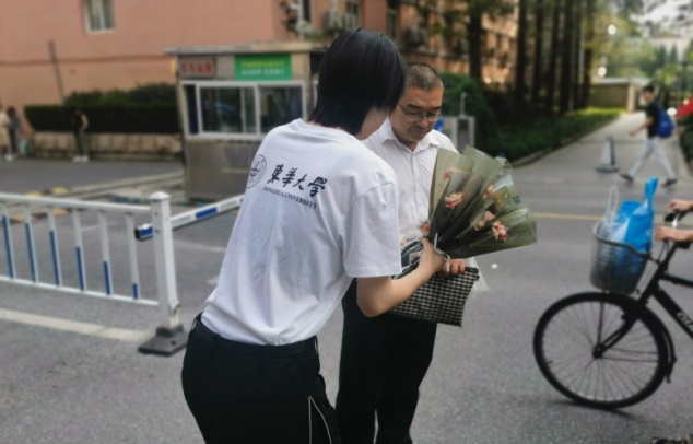 (学生为老师们送上鲜花和祝福)